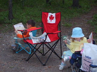 Well, Mommy J decided to test out all of the new camping gear by taking the two Little J's to Beaver Flats Campground which is 1km west of Elbow Falls. We spent one night at one of the most beautiful campsites I have even managed to snag, and Mommy J has seen her share of camp sites!